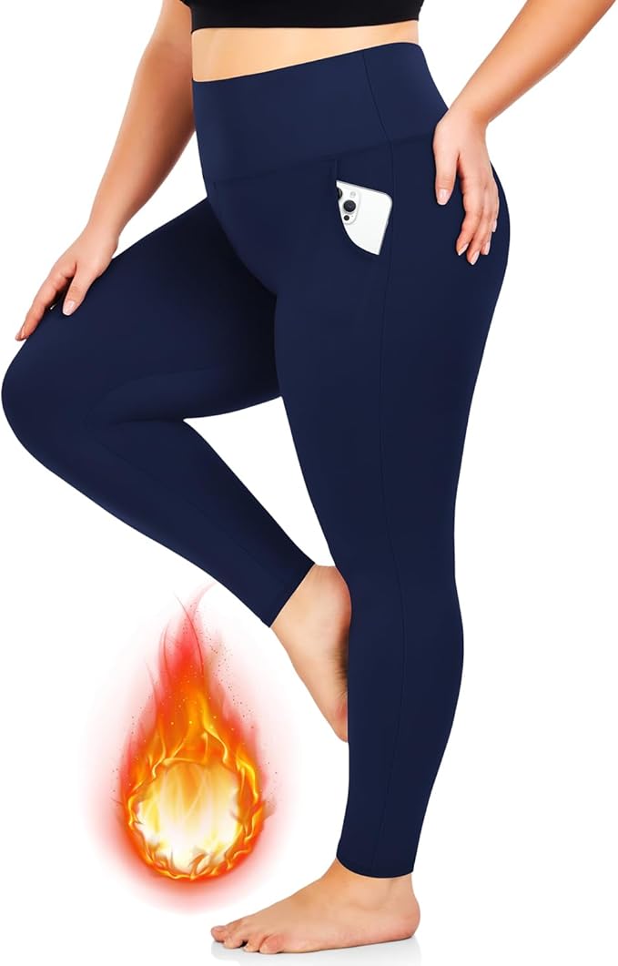 Plus Size Fleece Lined Leggings with Pockets for Women,Thermal Warm High Waisted Workout Yoga Pants for Winter