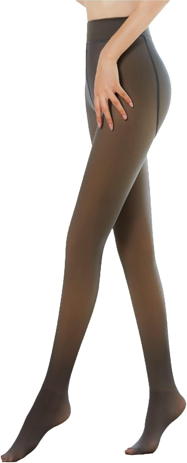Fleece Lined Tights for Women Fake Translucent Tights Leggings High Waisted Winter Sheer Footed Thermal Pantyhose