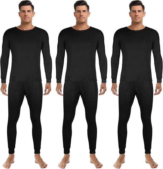 3 Set Thermal Underwear for Men Soft Long Johns Base Layer Thermals Fleece Warm Lined Top Bottom for Cold Weather Winter