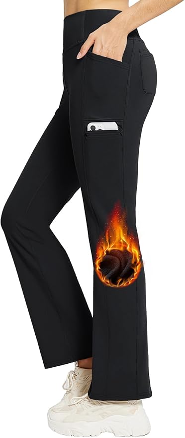 Women's Fleece Lined Pants Yoga Pants Warm Thermal Winter High Waisted Straight Leg Leggings with 6 Pockets