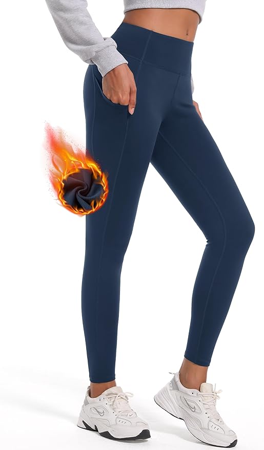 Fleece Lined Leggings Women with Pockets-Thermal High Waisted Tummy Control Warm Winter Workout Yoga Pants