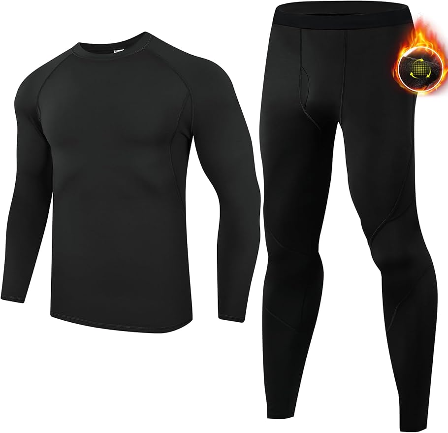 Long Johns for Men Comfortable Fit Mens Thermal Underwear Fleece Lined Top and Bottom Set with Pockets for Winter