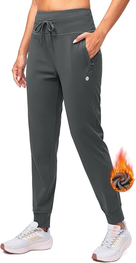 Women's Fleece Lined Joggers High Waisted Water Resistant Thermal Winter Sweatpants Running Hiking Pockets