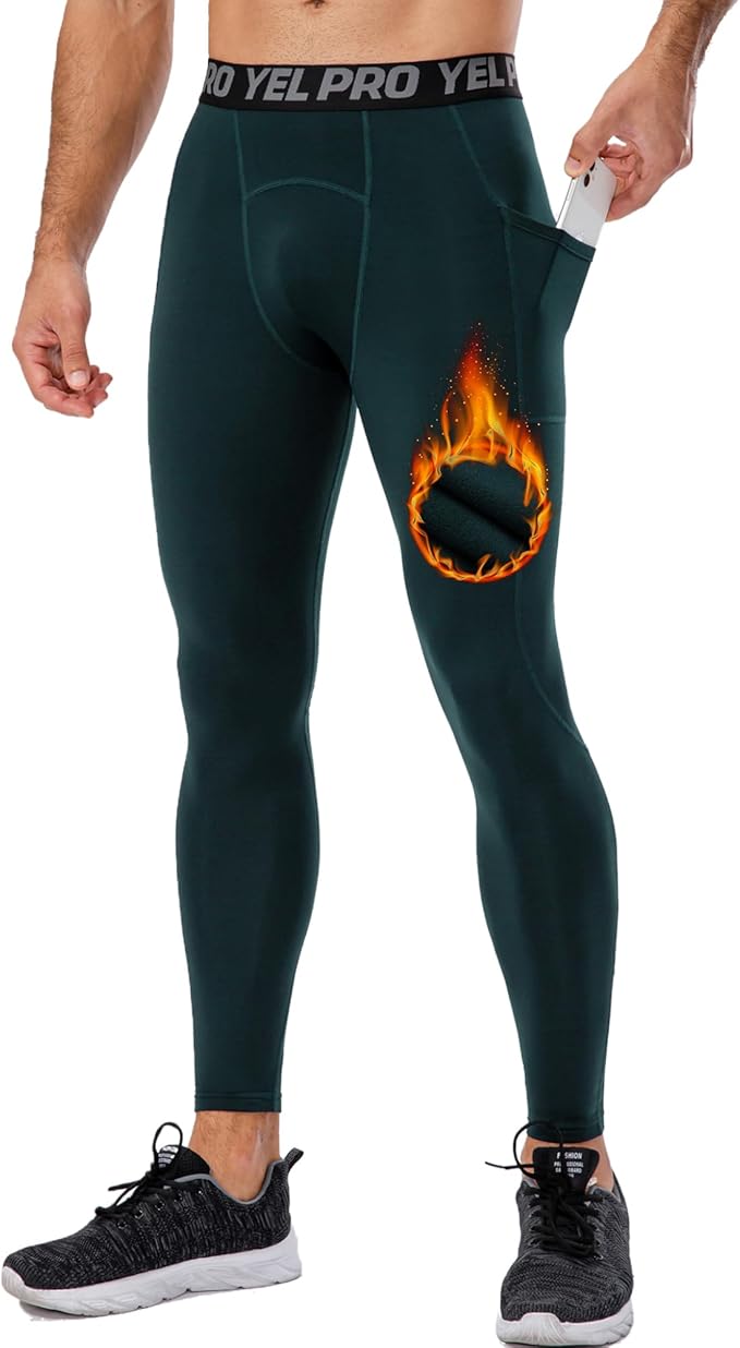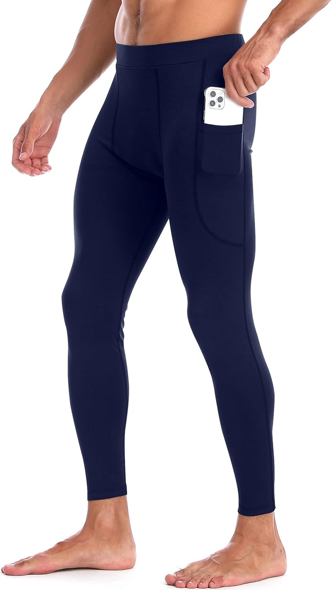 Mens Yoga Compression Pants - Athletic Leggings with Pockets Running Workout Basketball Base Layer Tights Quick Dry