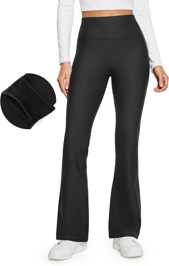 Womens Fleece Lined Flare Leggings 31" Bootcut Yoga Pants Tummy Control Winter Thermal Warm Soft Casual Lounge Pants